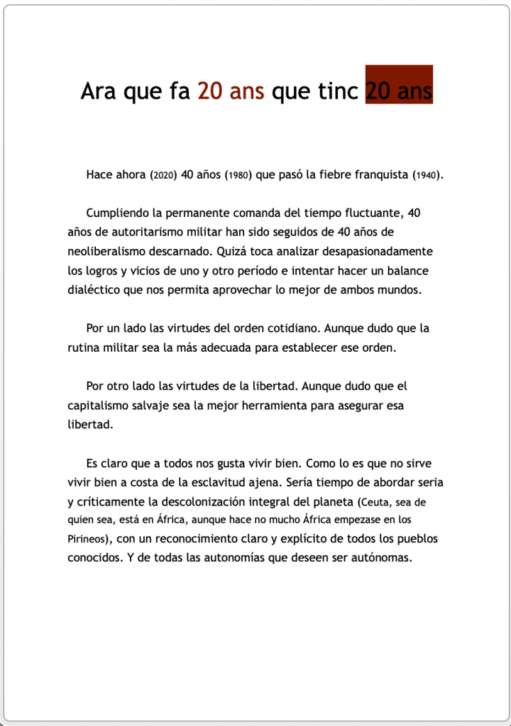 Hace ahora (en 2020) 40 años (1980) que pasó la fiebre franquista (1940).