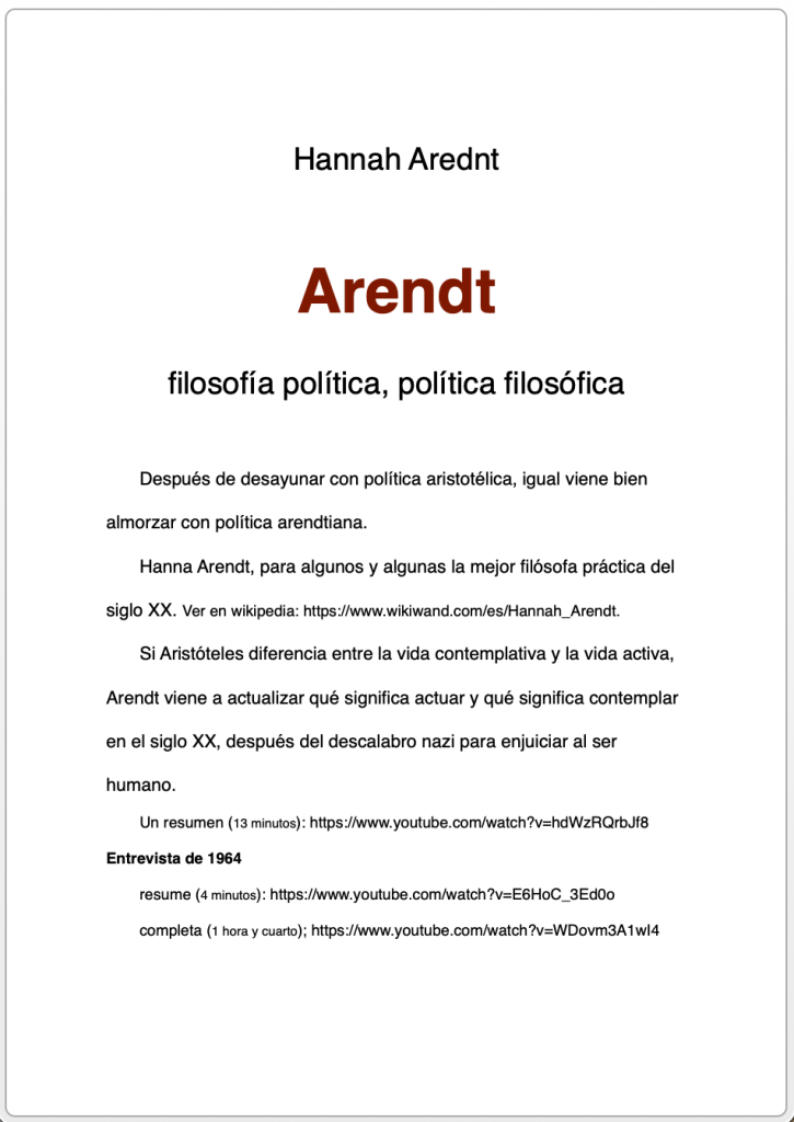 Hanna Arendt, para algunos y algunas la mejor filósofa práctica del siglo XX. Ver en wikipedia: https://www.wikiwand.com/es/Hannah_Arendt.