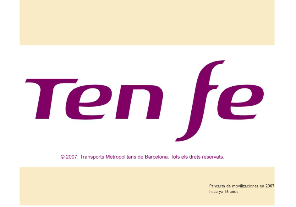 “Ten fe” Era el eslogan de la pancarta de Transports Metropolitans de Barcelona en movilizaciones de 2007.